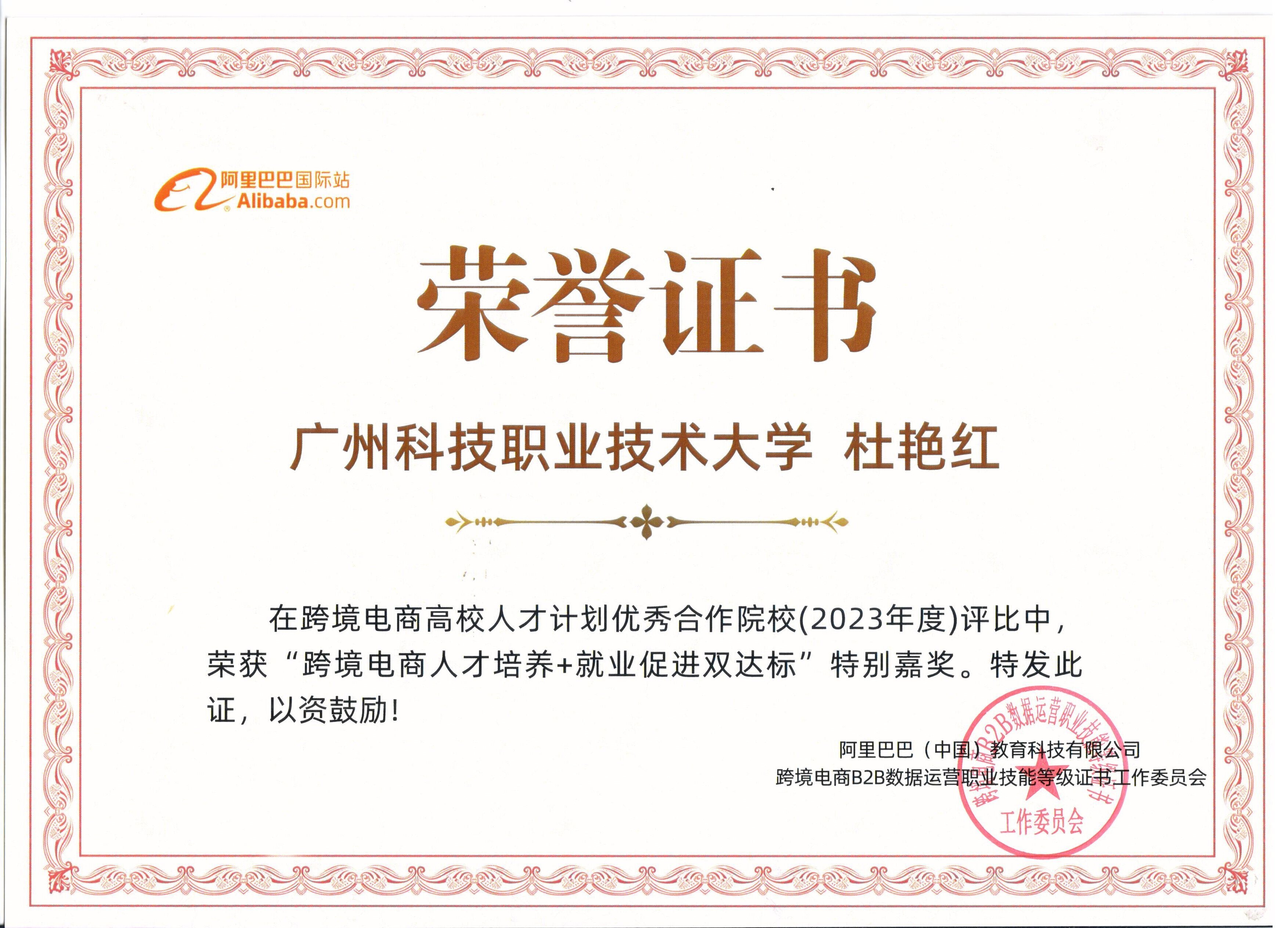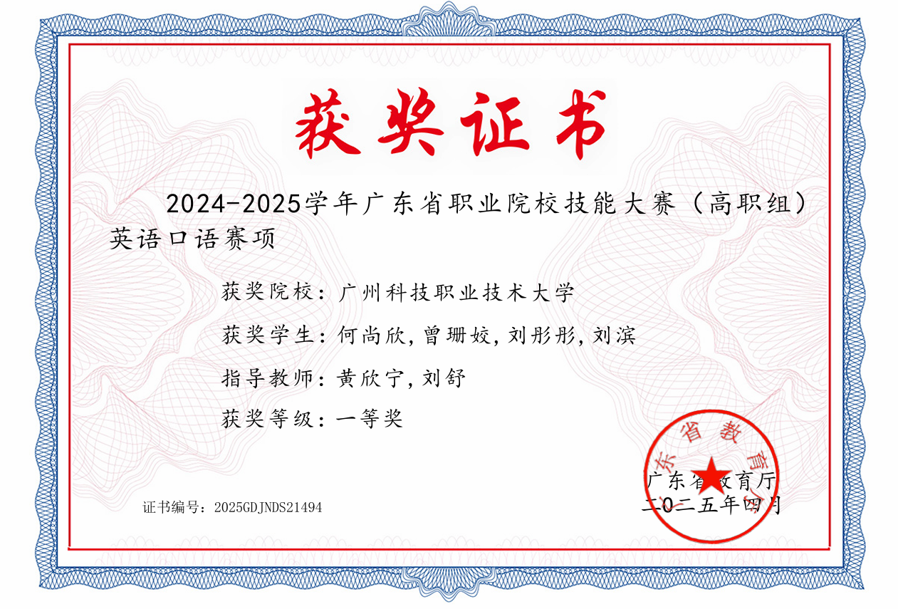 (1)竞赛获奖成果丰硕,学生在跨境电商及相关领域竞赛中屡获高阶奖项,先后斩获全国大学生跨境电商创新创业大赛(国家级一等奖)、全国大学生数字创新能力大赛(国家级一等奖)、全国大学生英语翻译大赛(国家级一等奖)、广东省职业院校技能大赛英语口语大赛(省赛一等奖)、“外教社Ÿ词达人杯”全国大学生英语词汇能力大赛(省赛二等奖)、一带一路暨金砖国家技能发展与技术创新大赛(国赛二等奖)、全球. . .