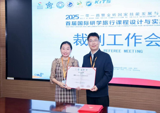 近日,2025 一带一路暨金砖国家技能发展与技术创新大赛首届国际研学旅行课程设计与实施创新赛项(华北赛区)在山东理工职业学院落下帷幕。我校经济与管理学院旅游管理专业涂艳老师,在黎翔院长的悉心指导与大力支持下,受邀担任赛事裁判,不仅圆满完成执裁任务,更将赛事实践成果转化为教学改进动能,在旅游管理教研室的协同互助中,奏响“以赛促教、以赛兴学”的新篇章。