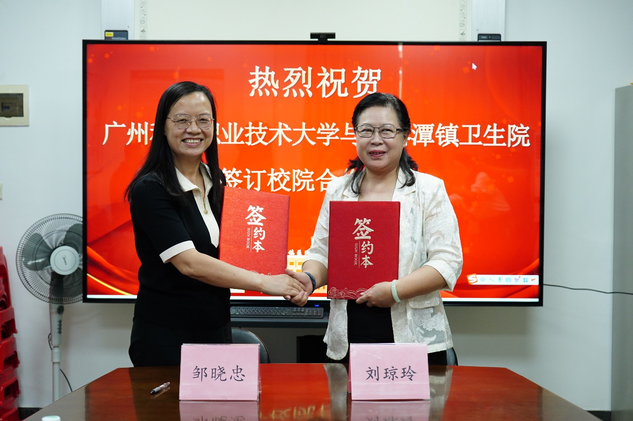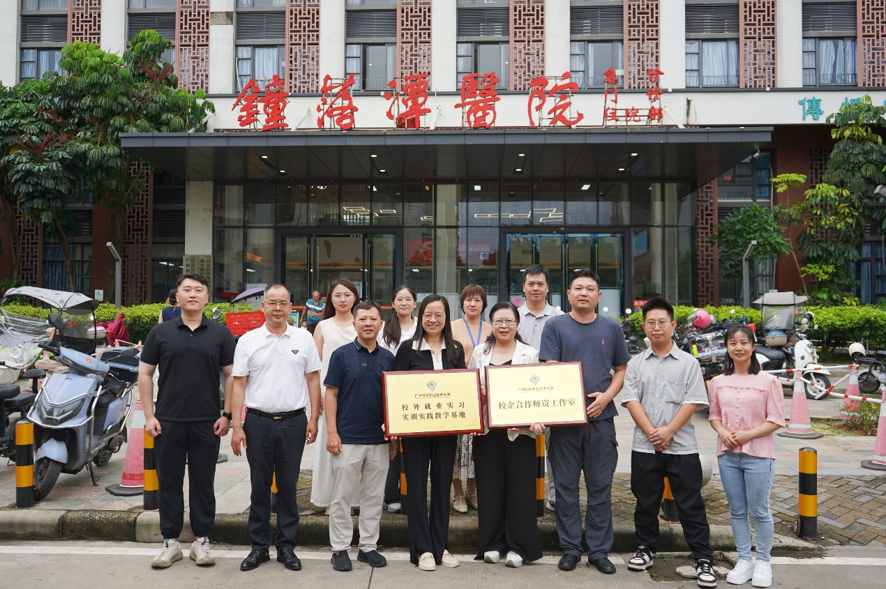 图为:健康学院与钟落潭医院举行实训基地与校企合作工作室挂牌仪式