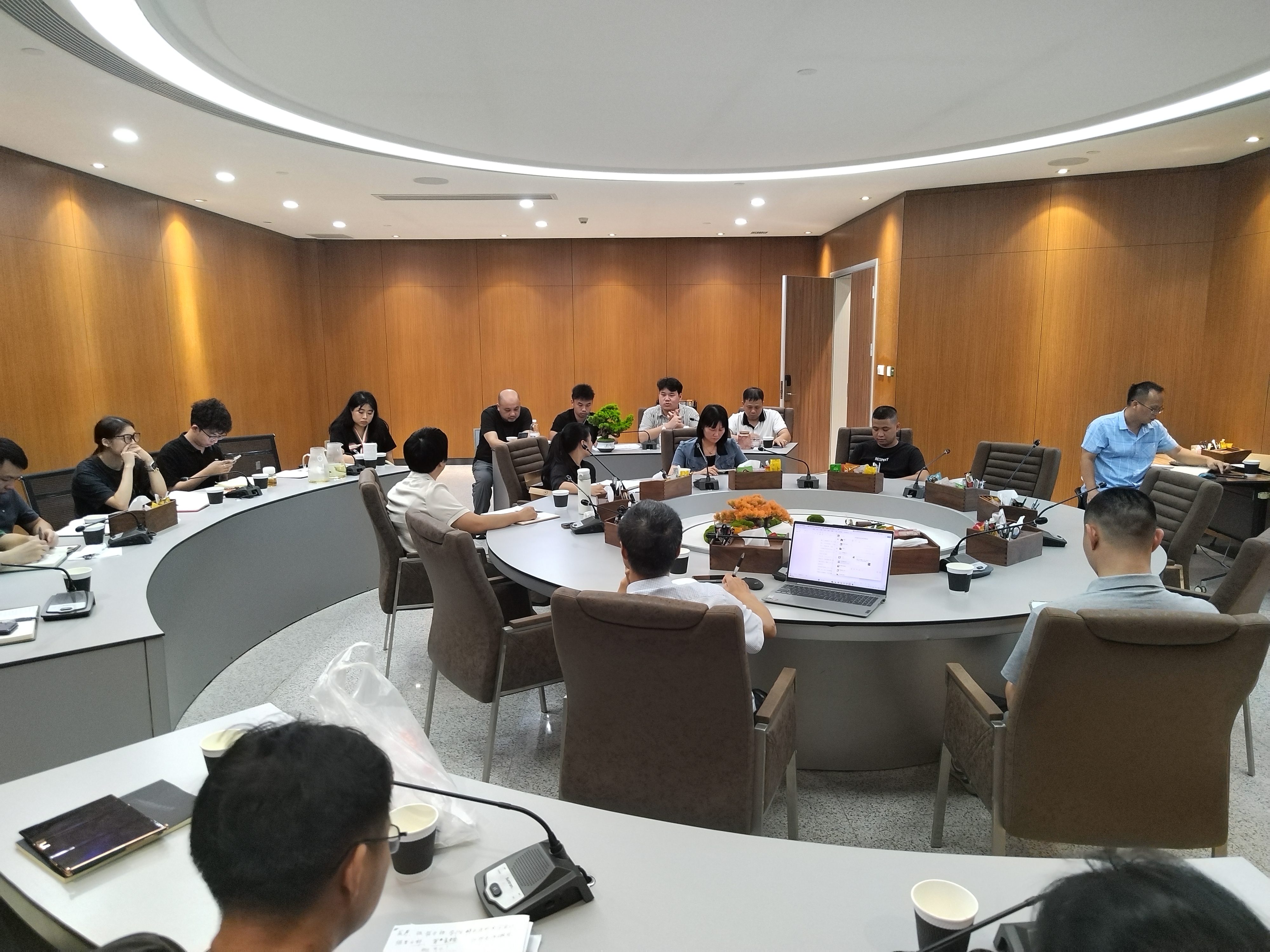 (4)智慧城市工程学院展厅方面事宜:尽量按照品牌中心提供的参考,学院自己完成相关设计工作;采购部表示,相关屏在9月5号前完成;装饰部表示会在9月1日前完成工程施工;只做展厅,以木工为主做天花和隔断。