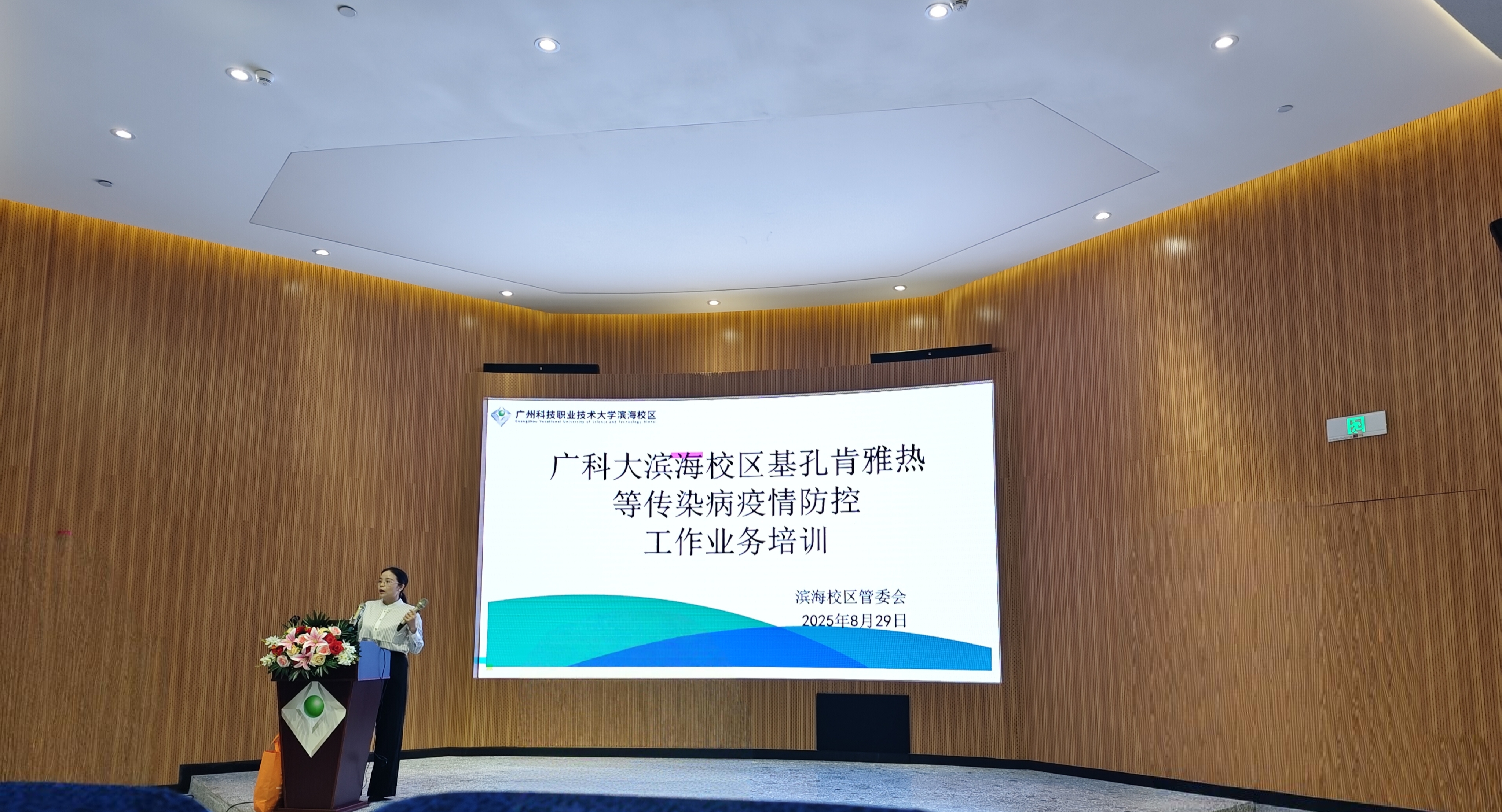 2025年8月29日上午8点45分,基孔肯雅热等传染病疫情防控工作业务培训在滨海校区行政楼二楼报告厅举行。本次培训由滨海校区管委会副主任祝慧敏主持,应茂名市疾控中心关于加强蚊媒传染病防控工作的要求开展,旨在为即将到来的新生入学和军训活动提供健康安全保障。