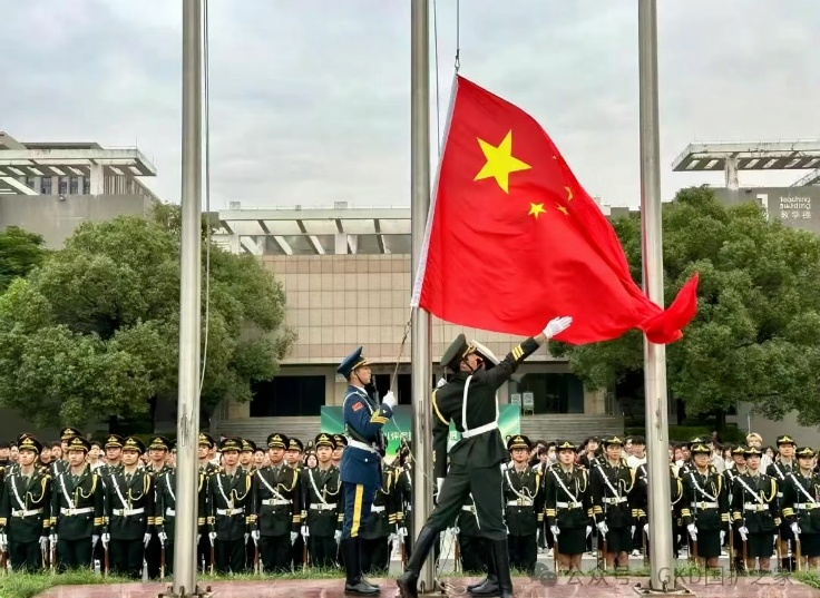 让我们在这面飘扬的国旗下,铭记初心,不忘责任,共同携手为学院的明天贡献力量!